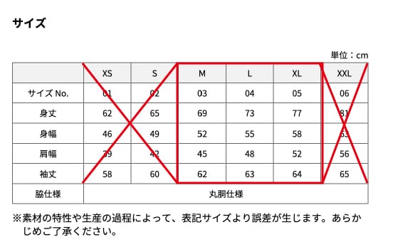 【M】====【L】====【 XL】